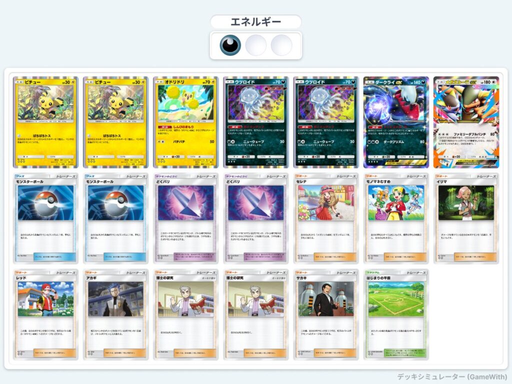 ピチューでのエネルギー加速やオドリドリでのex対策もあるので、ただ害悪と言うだけではなく、それなりに勝てる構成になっている。