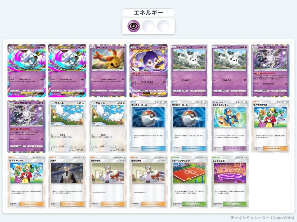シルバーの使い勝手が少し難しいので1枚にしたり、ムウマージexを入れて多少火力よりにしてみるのもよい。