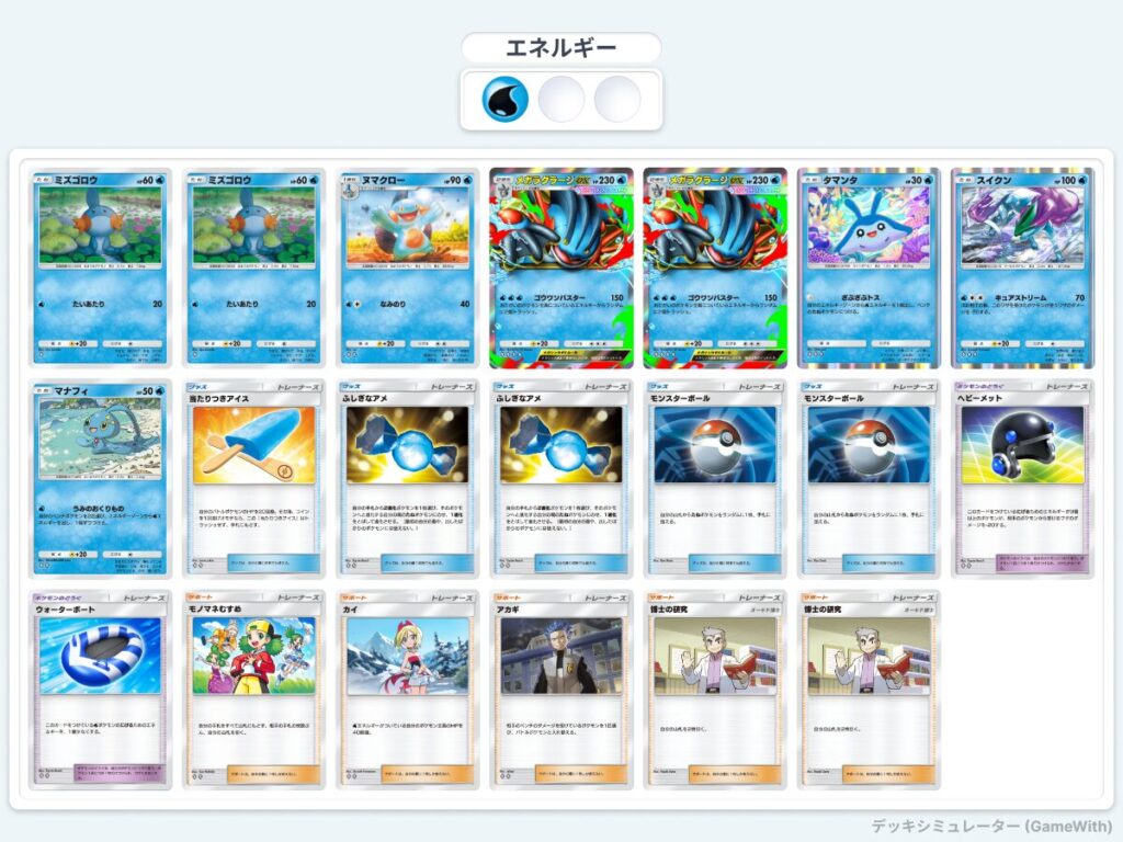 メガギャラドスexをミロカロスで回復しつつ、ヘビーメットで耐久力も上げていくデッキ。