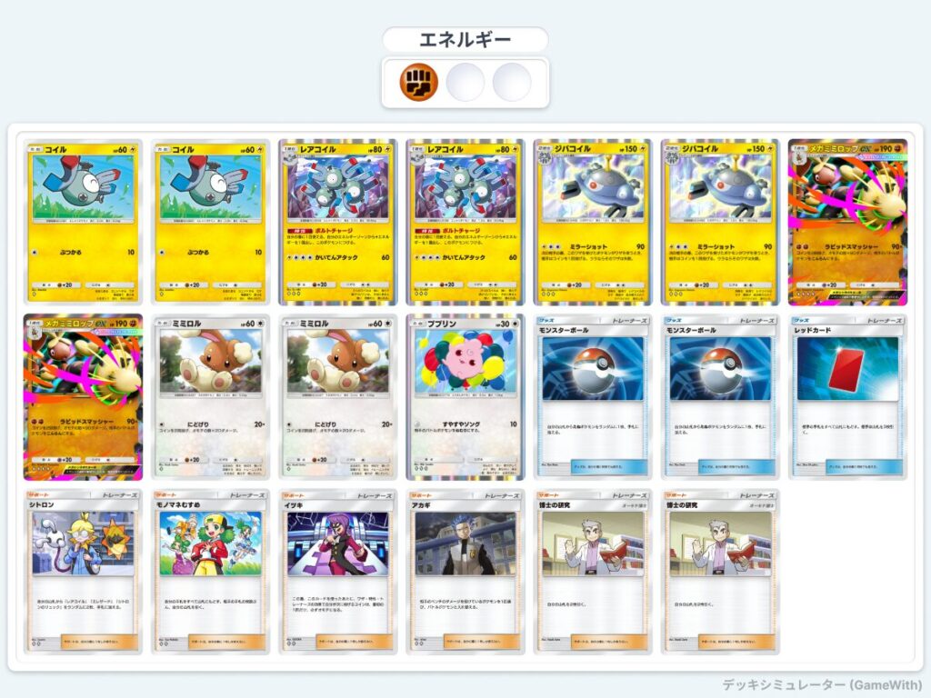 メガミミロップで0か90か180ダメージなのかをコインにゆだねるデッキ。