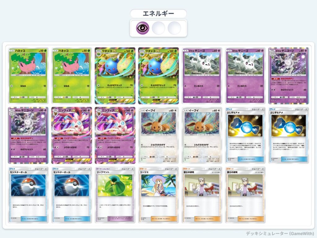 ペルシアンを抜いてニャースだけにし序盤の事故率や加速率をあげたり、ナツメを1枚にしレッドカードを入れ相手プレイヤーへの阻害を増やしたりするのもよい。