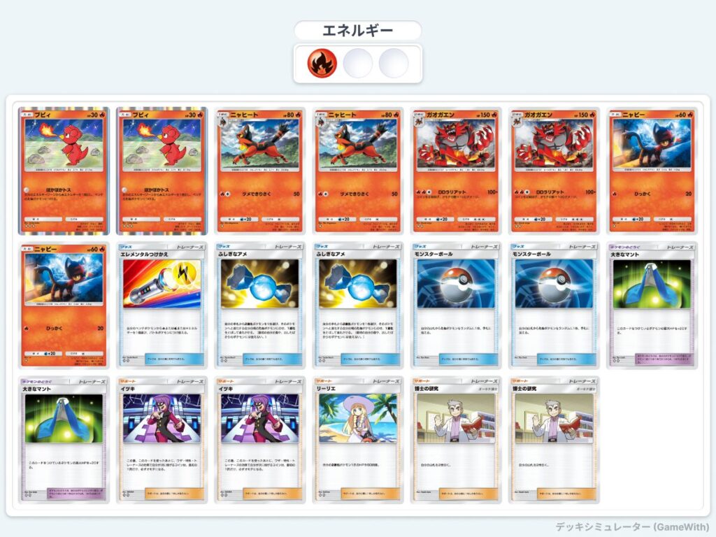 ふしぎなアメ構成でよくある通り、ニャヒートを1枚減らし他のカードを入れるなどアレンジ可能。